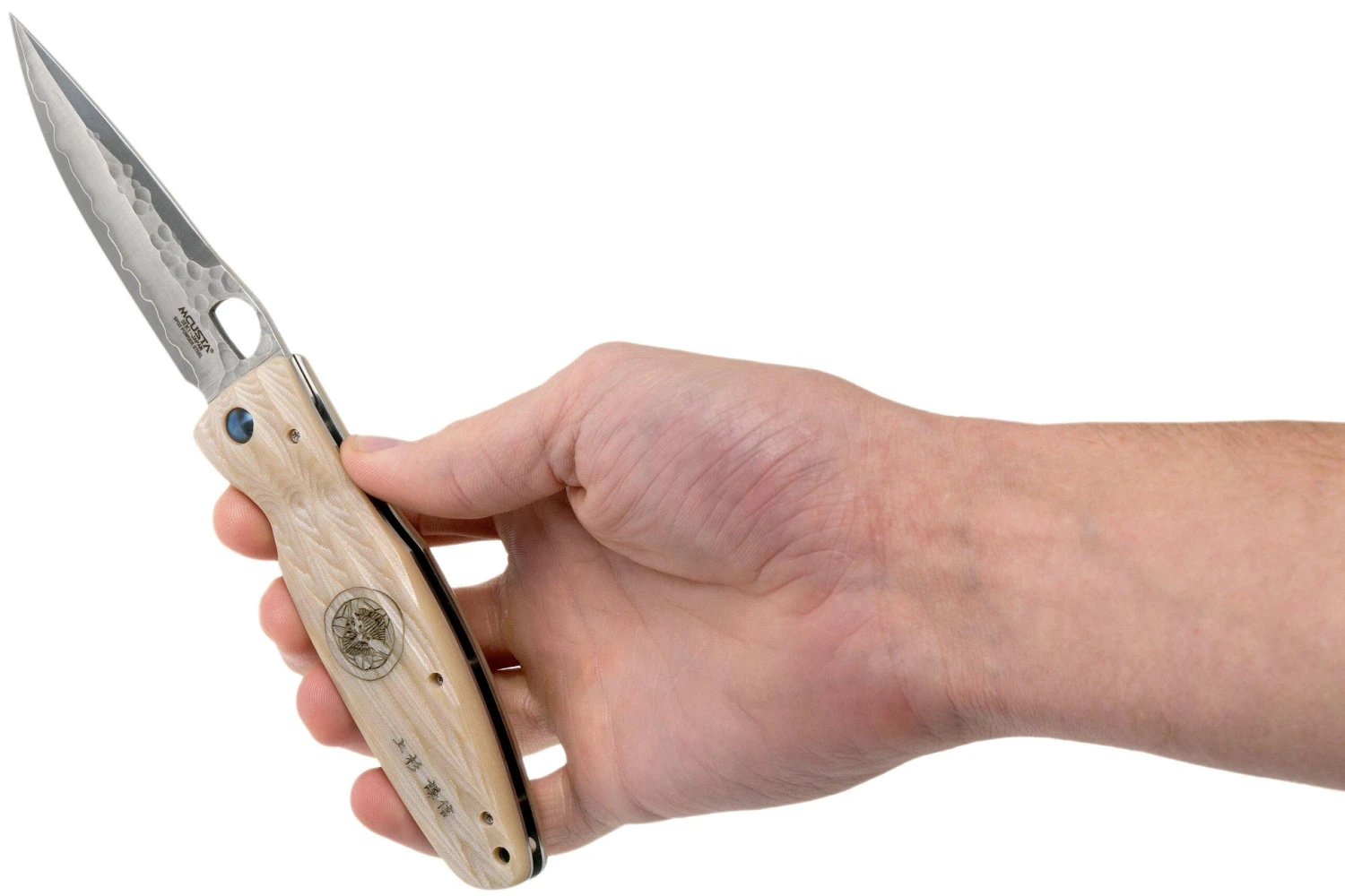 Mcusta MC-0185G Sengoku Uesugi Kenshin SPG2, White Micarta, Cuchillo De Caballero