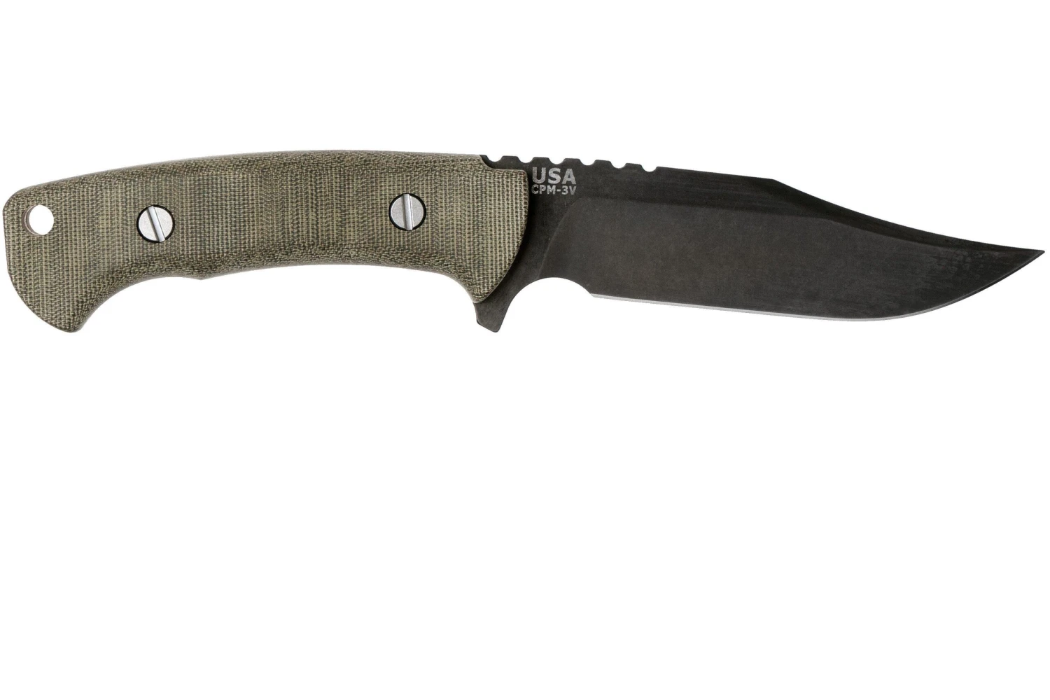 Rick Hinderer Ranch Bowie Green Canvas Micarta, DLC Stonewashed, Cuchillo Bowie