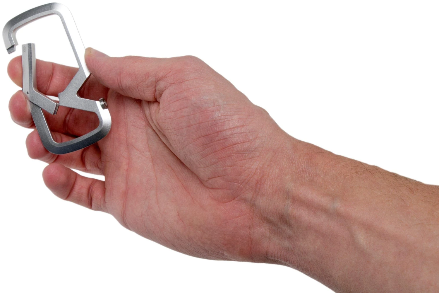 El James Brand Mehlville es un mosquetón de titanio sólido que será el compañero perfecto para tus llaves o herramientas. El Mehlville se abre fácilmente empujando el mosquetón hacia dentro. Una vez que las llaves están en su sitio, puedes volver a empujar el mosquetón hacia dentro. Así, las llaves se desplazarán hacia la segunda parte del mosquetón, donde estarán seguras y no se caerán fácilmente. Este mosquetón también está mejorado con un innovador abridor de botellas con un disco de acero intercambiable. Este disco de acero se fija al mango con un tornillo y, si es necesario, puede cambiarse. Como este disco está hecho de acero inoxidable endurecido, no se desgastará tan rápidamente como el titanio. ¡Práctico si quieres abrir una botella al final del día!